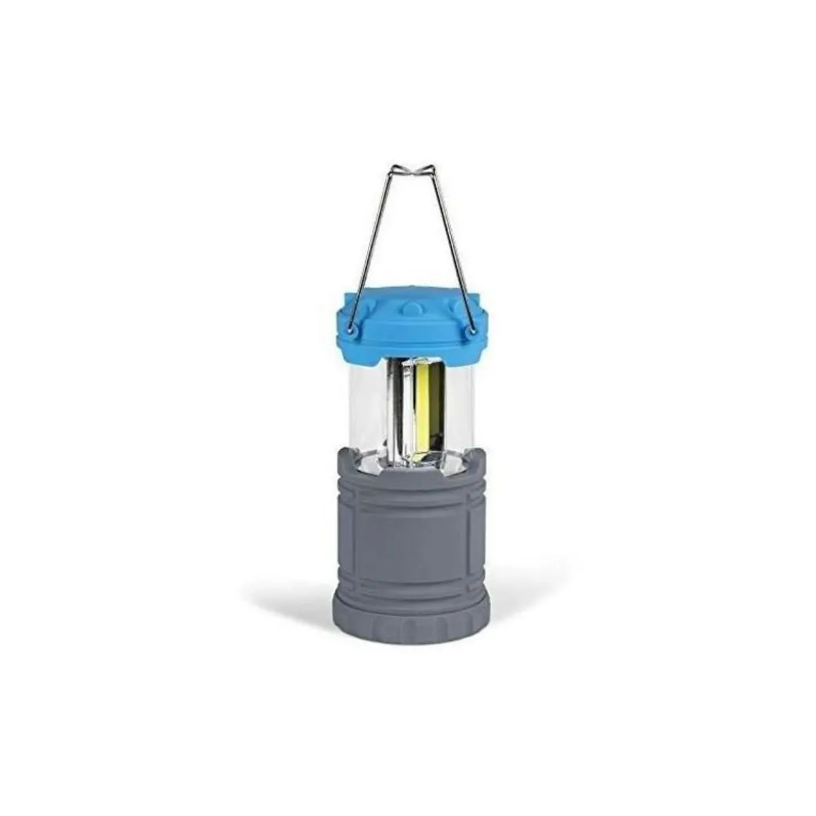Lanterne compacte a LED, légere : 230 g. Il faut la déplier pour l’allumer et la replier pour l’éteindre. Fonctionne avec 3 piles AA. Nouvelle technologie COB (Chip On Board) émet une lumiere beaucoup plus brillante et plus large qui se propage sur une longue distance.