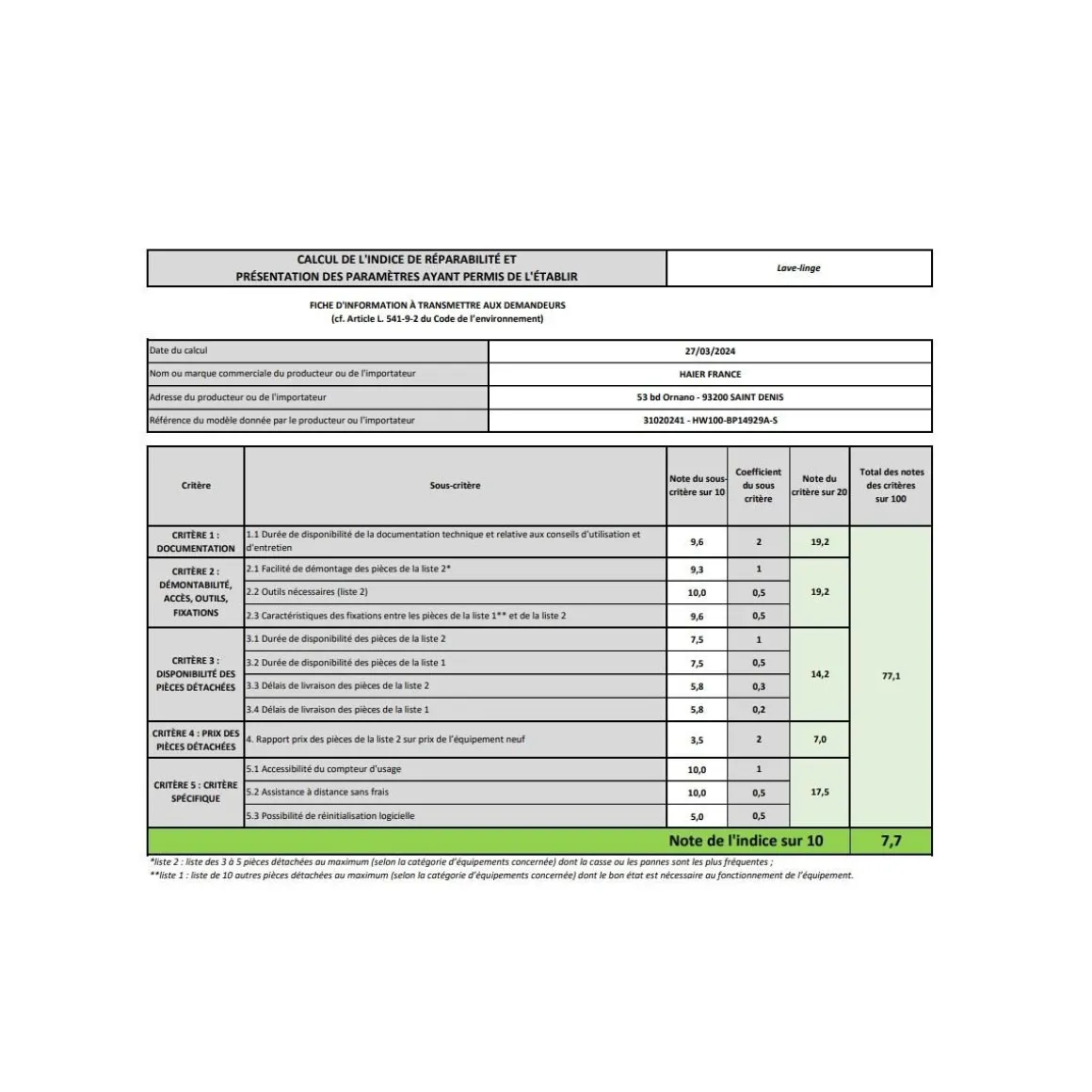 Classe énergétique – (UE N°1369/2017) : A-20%.