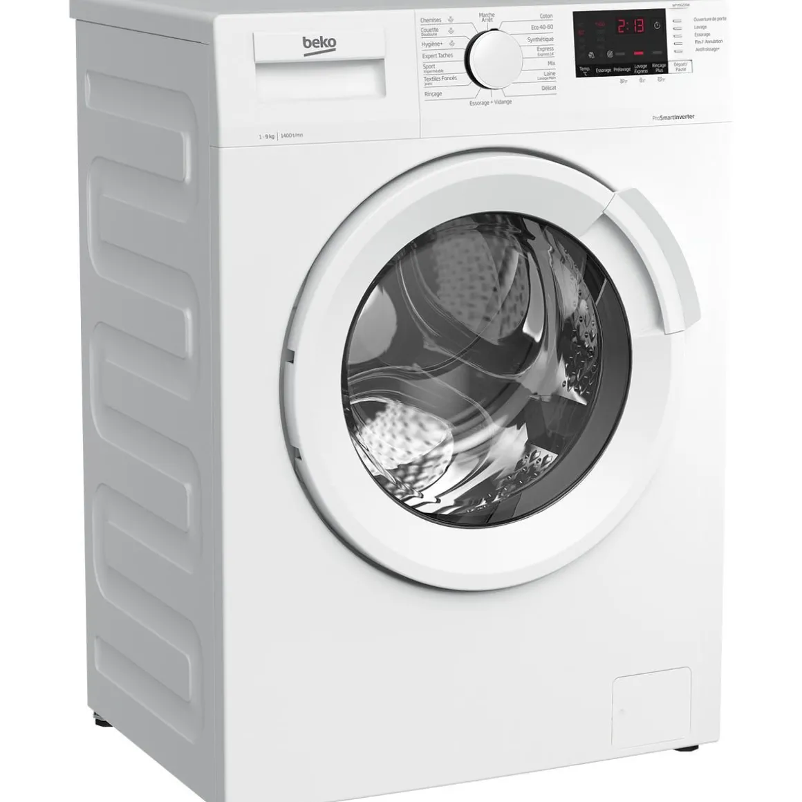Le lave-linge hublot Beko WTV95220W de couleur blanche, bénéficie d’une capacité de 9 kg, de 15 programmes dont un programme délicat. Sa vitesse maximale d’essorage est de 1400 tours/min. Il est équipé d’un moteur à induction ProSmart Inverter pour une machine robuste et silencieuse, et de parois anti-Vibrations pour une diminution du bruit lors du lavage et de l’essorage. Il est doté d’une capacité variable automatique qui optimise les consommations d’eau et d’électricité à la quantité et à la nature du linge, réalisant ainsi des économies. Il est possible de programmer son lave-linge pour un départ différé jusqu’à 19h. Son grand afficheur digital permet de connaître le temps restant avant la fin du cycle et de gérer le départ différé.