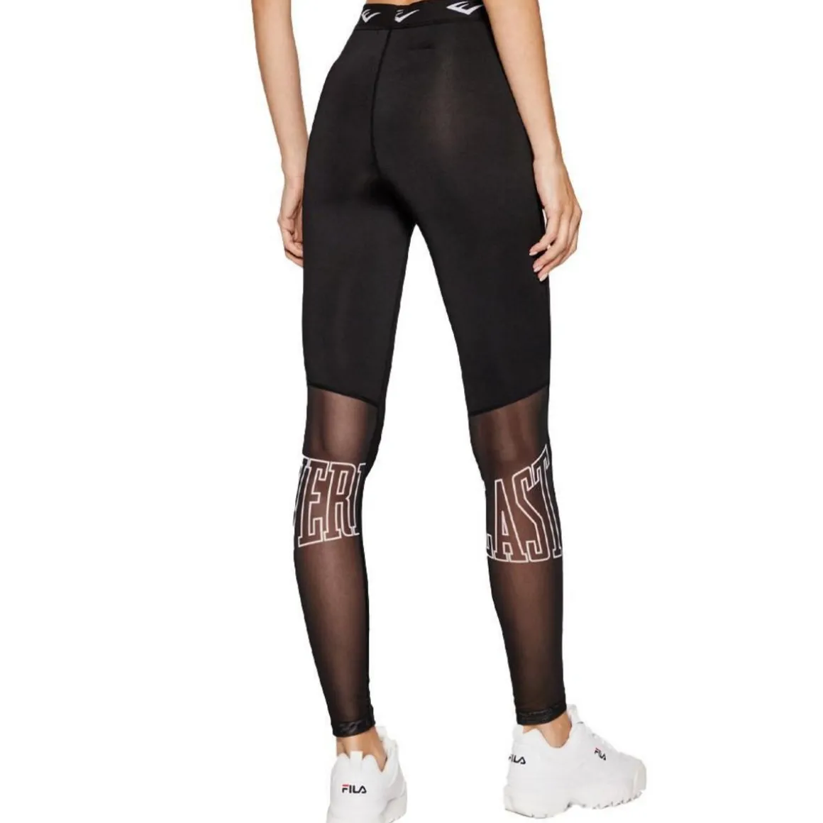 Legging pour femme de la marque Everlast ! Couleur : Noir, Blanc Coupe ajustée Taille haute Ceinture élastique Bas arrière du legging transparent Imprimé Everlast Composition : 90% polyester, 10% élasthanne