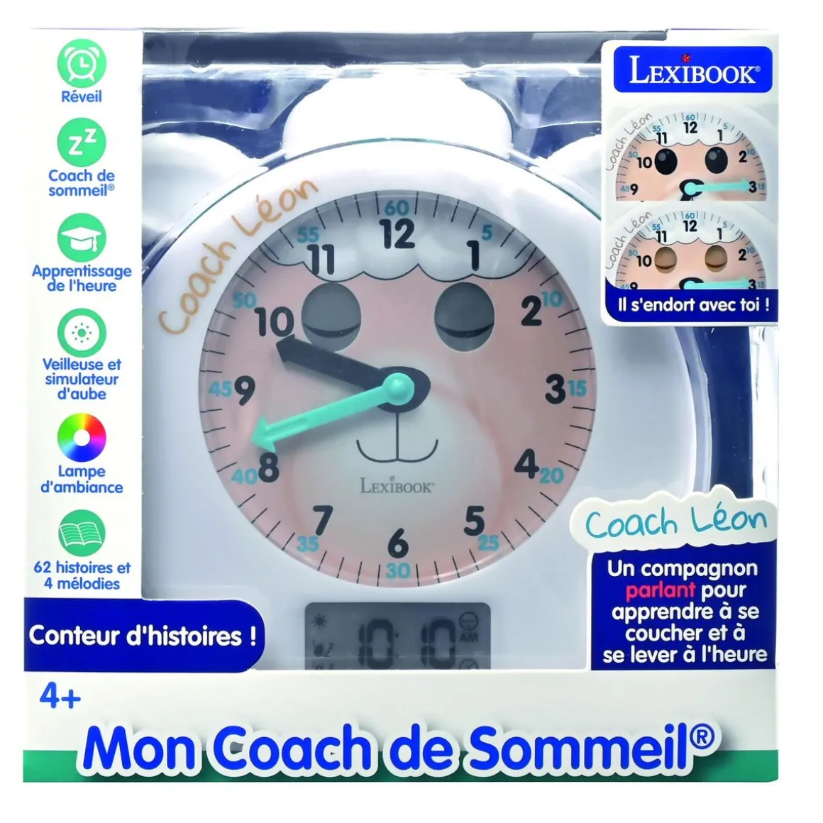 -Coach de sommeil parlant : il ferme les yeux quand c’est l’heure de dormir et les ouvre quand il est l’heure de se réveiller !