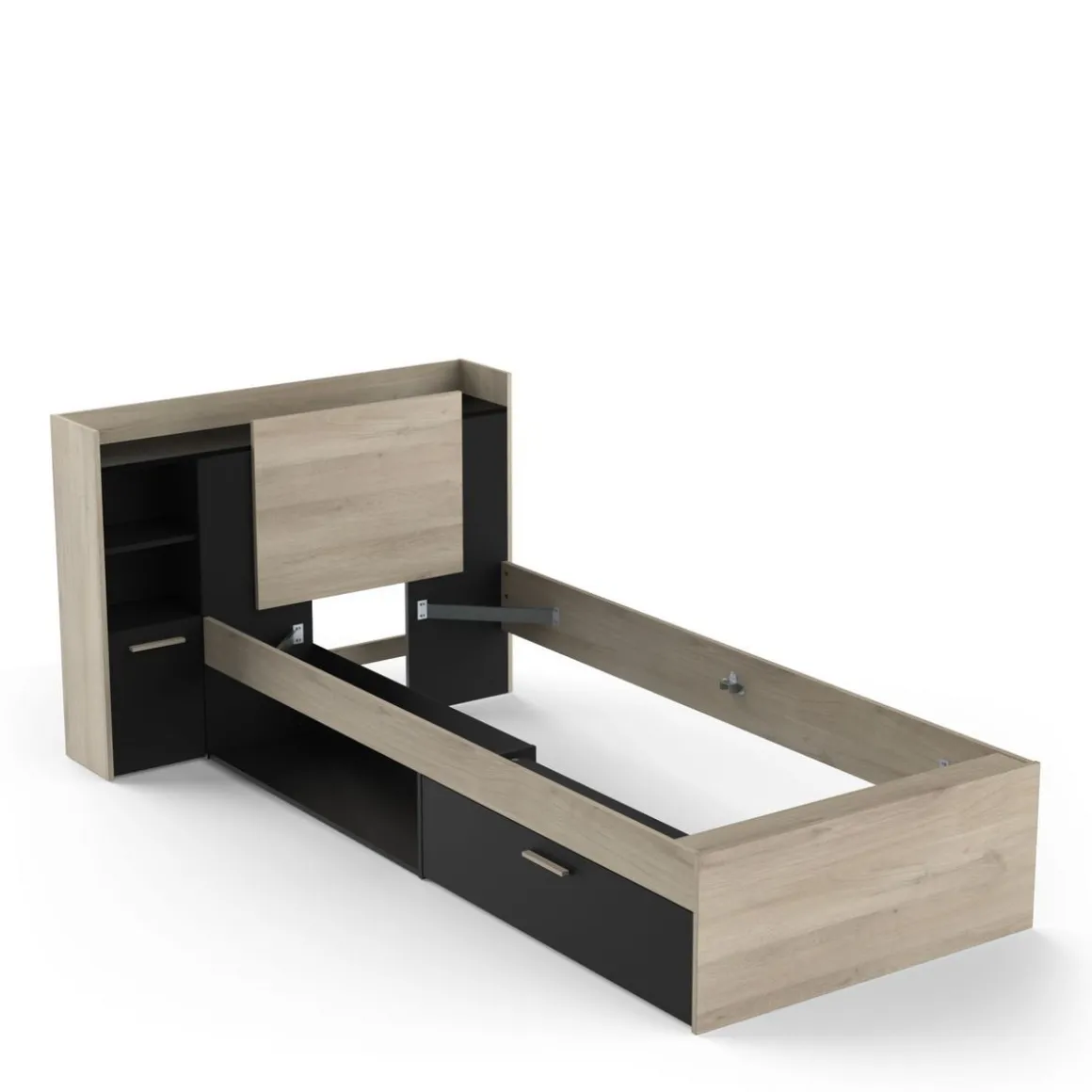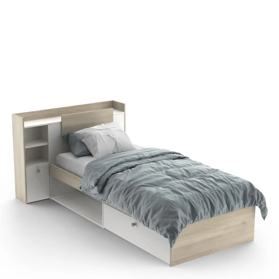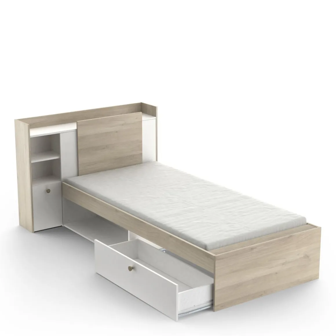 LIT 90X190/200CM+1 TIROIR+1 NICHE+ENVIRONNEMENT « LIFE »