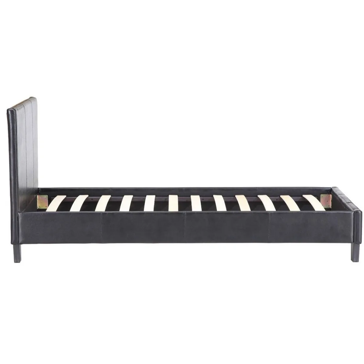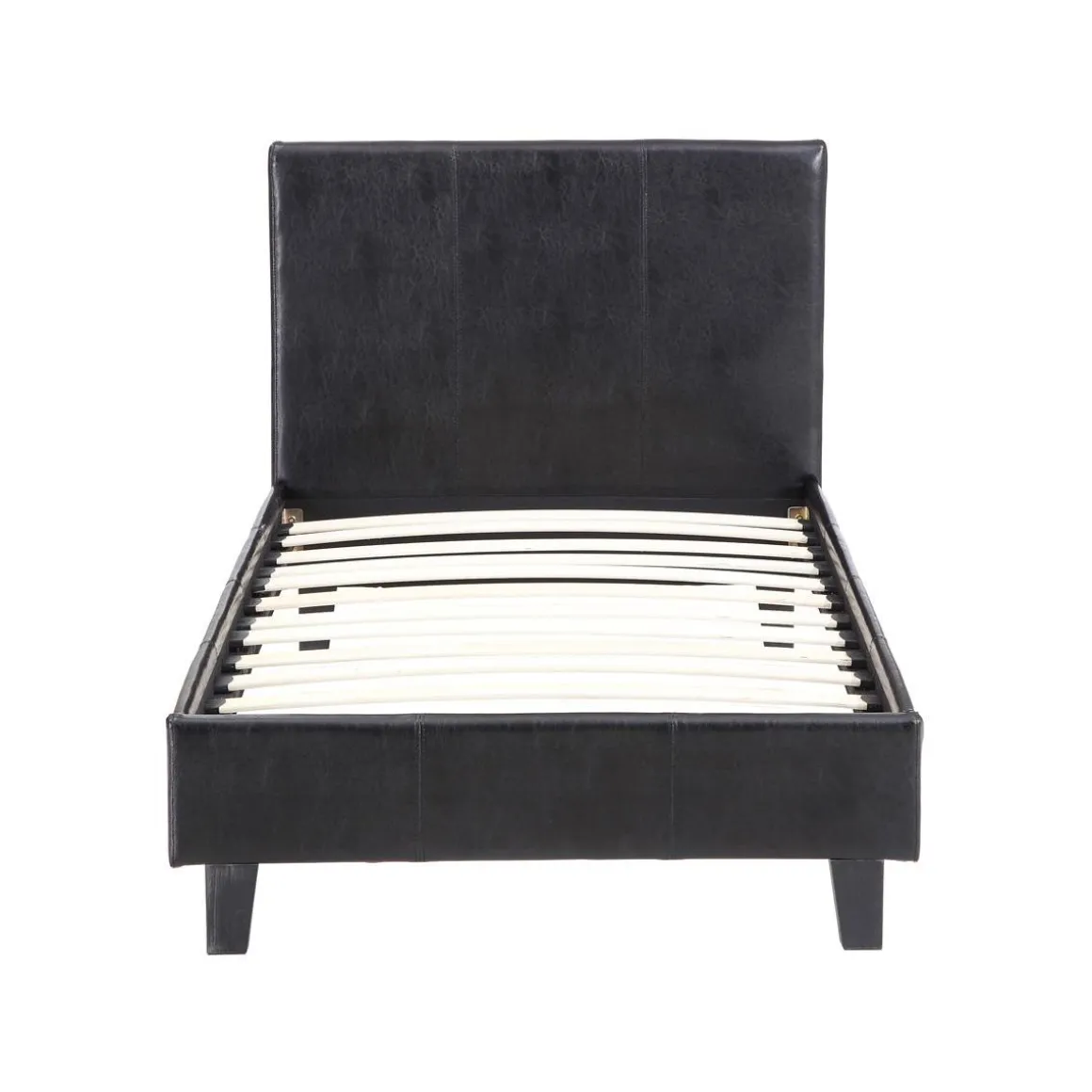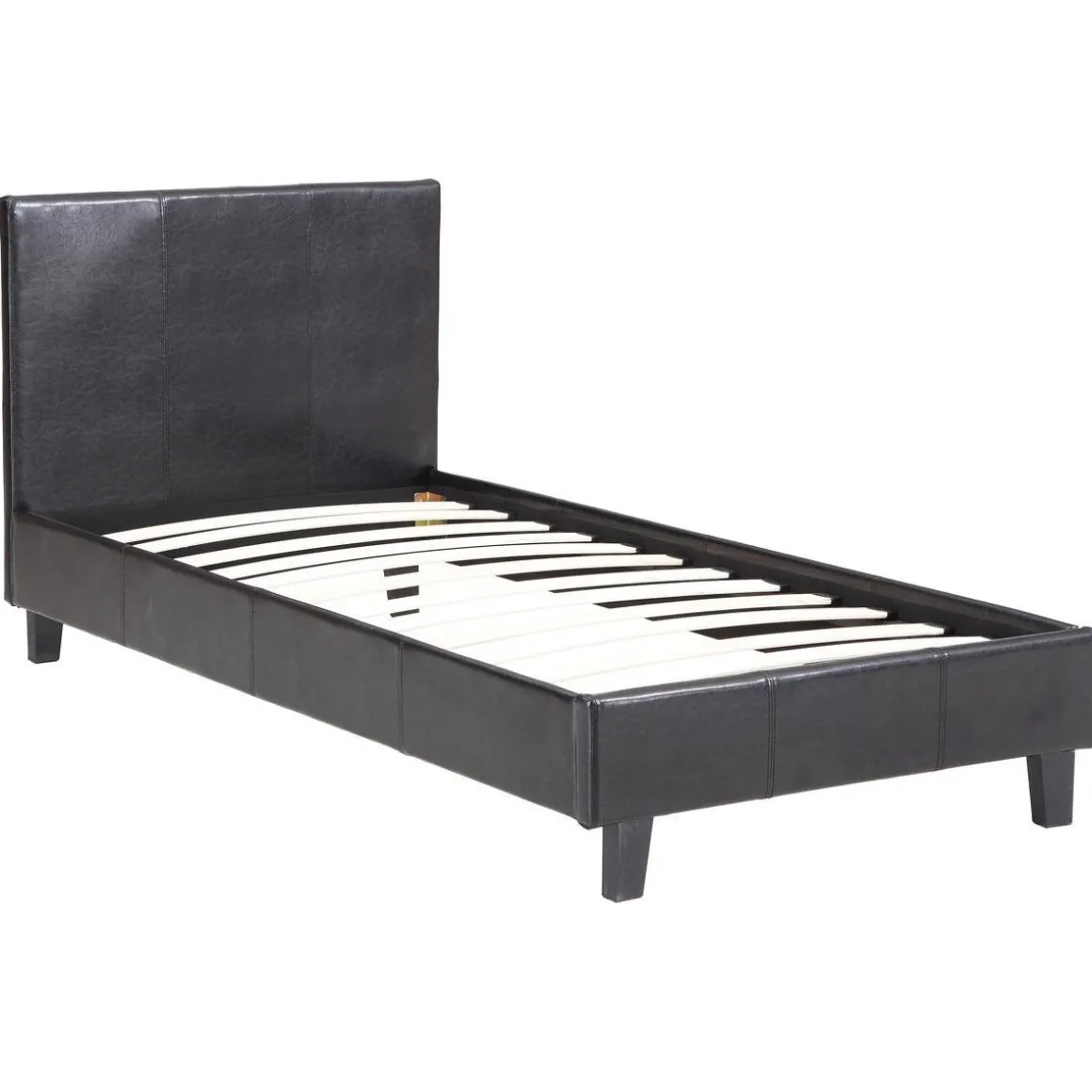 Existe en plusieurs dimensions.Descriptif : Apportez un changement à votre quotidien avec notre lit Lina. Ce lit est complet (Livré sans matelas). En effet, il s’accompagne d’un sommier à latte et d’une tête de lit. Notre lit constitue une pièce raffinée et chic. Son aspect cuir noir, convient à tout types d’intérieur, altique ou moderne. Sa simplicité et sa sobriété créeront une atmosphère propice au sommeil. Supporte jusqu’à 150 kg.