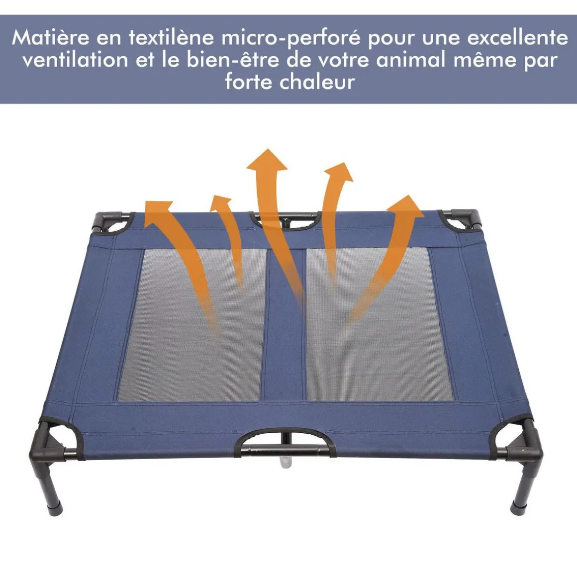 – Lit sur pieds XXL surélevé idéal pour tenir votre chien à l’écart de l’humidité éventuelle du sol et des insectes : confort optimal de repos pour votre animal