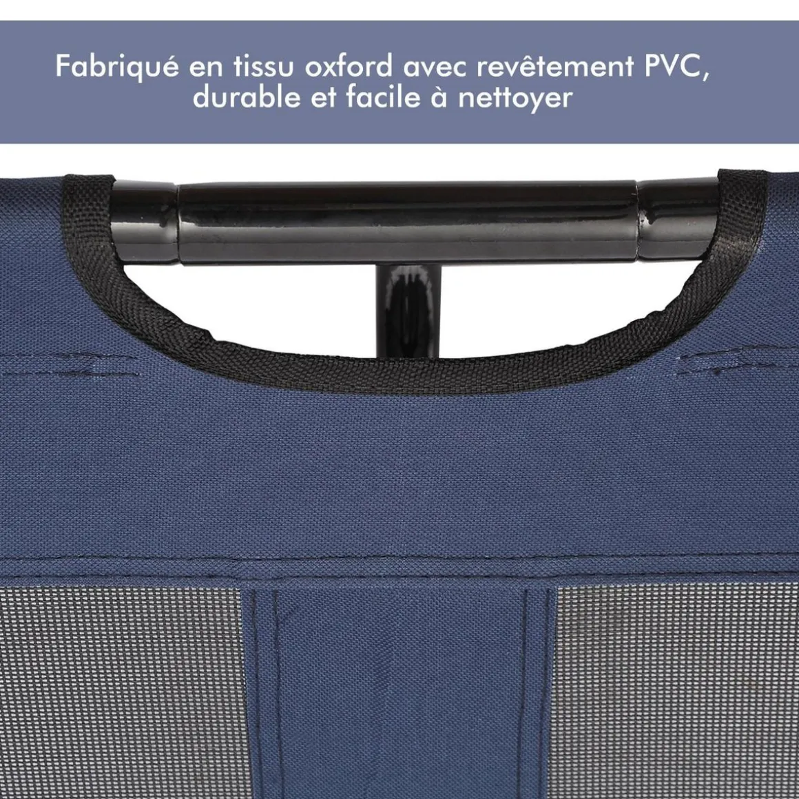– Matériaux principaux : métal époxy anticorrosion, tissu oxford, textilène