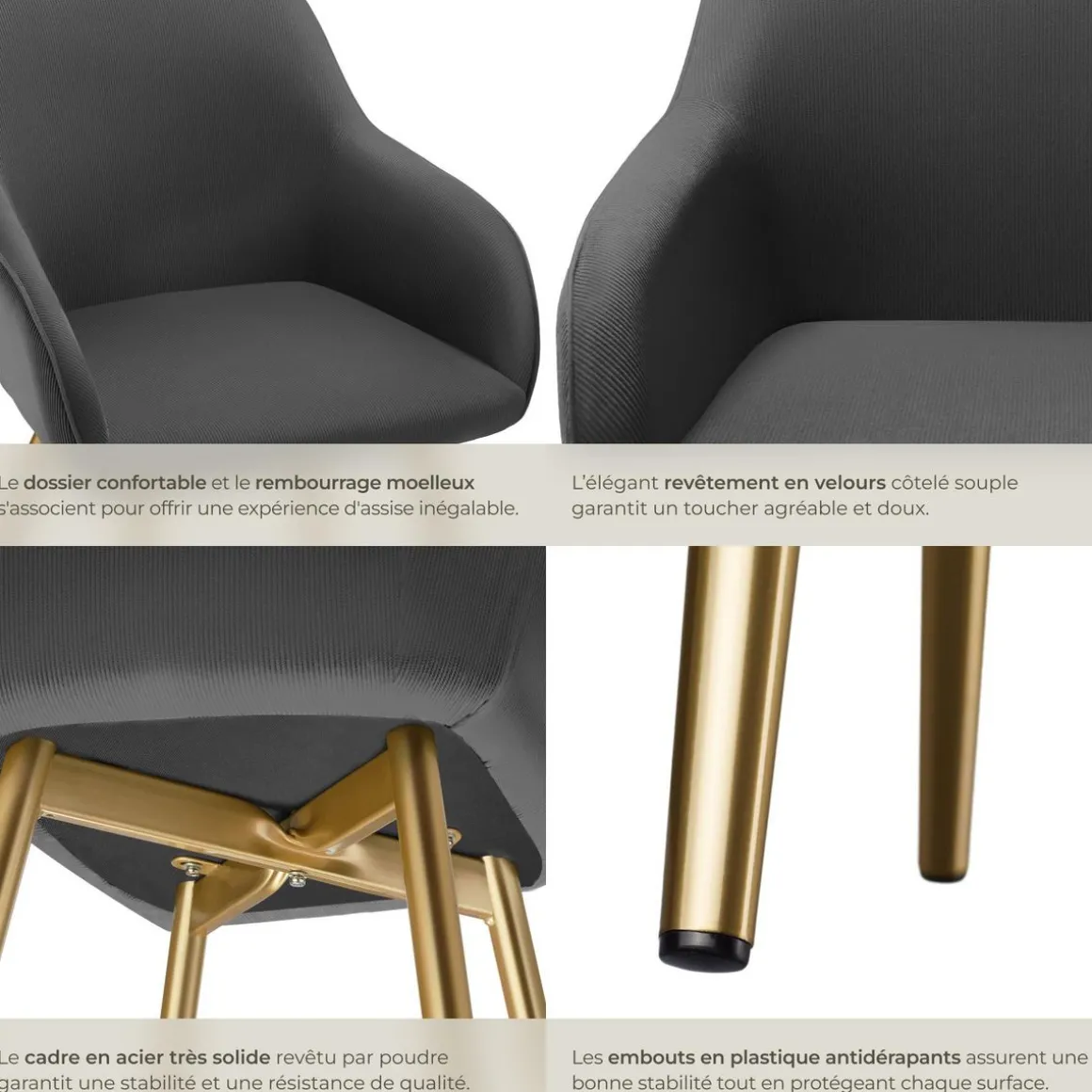 - Chaises élégantes avec revêtement en velours côtelé doux
