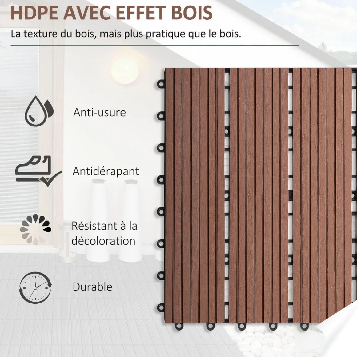 – Caillebotis idéaux pour jardin, balcon, piscine, salle de bain et plus