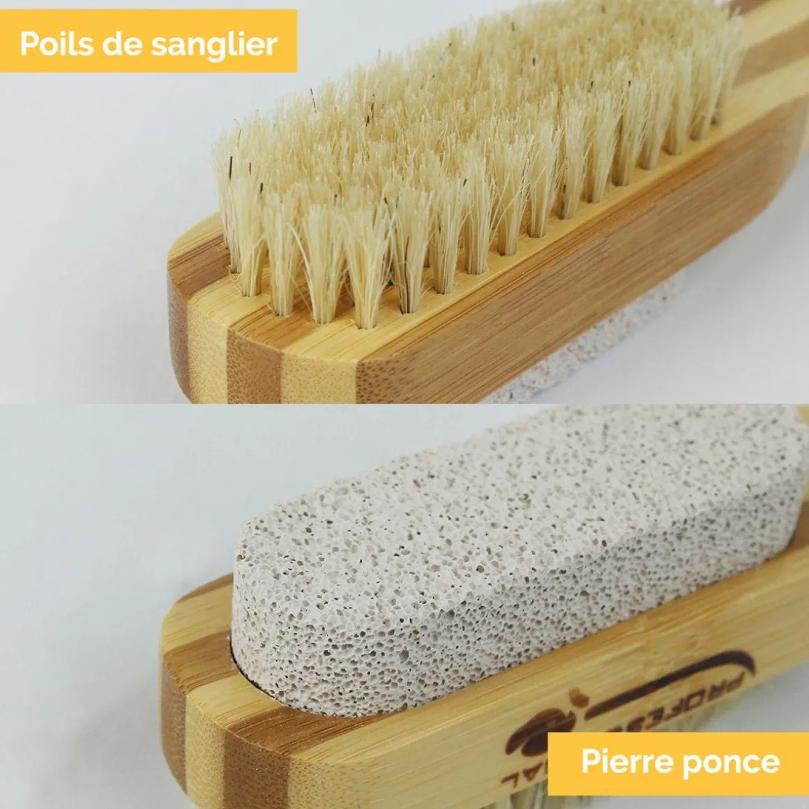 Lot de 2 brosses à ongles et pierre ponce 17,5 cm double face en bambou et poils de sanglier