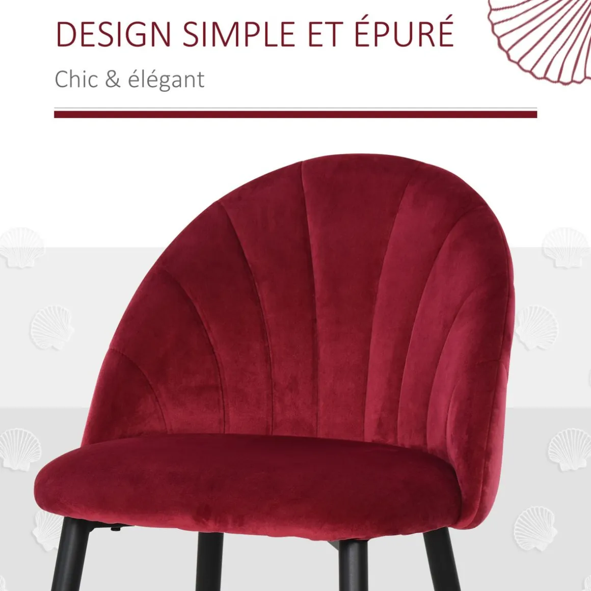 – Matériaux principaux : velours (100% polyester), rembourrage mousse, métal