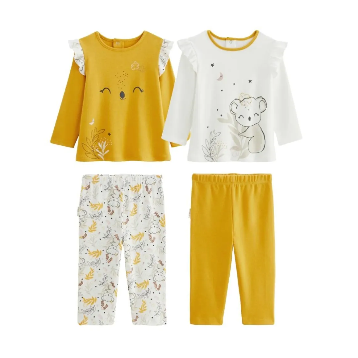 Toujours mieux par deux, on a pensé à vous ! Notre lot de 2 pyjamas va faire parti du dressing hivernal de votre petit bout avec ses belles couleurs écru et ocre qu’on adore. Le petit + : vous pourrez facilement les matcher et avoir un pyjama différent selon l’humeur de bébé ! Produit labellisé STANDARD 100 by OEKO-TEX ® (BJ020 189402 TESTEX) Fonctionne en Mix & Match Des jolis petits volants sur les hauts de pyjamas
