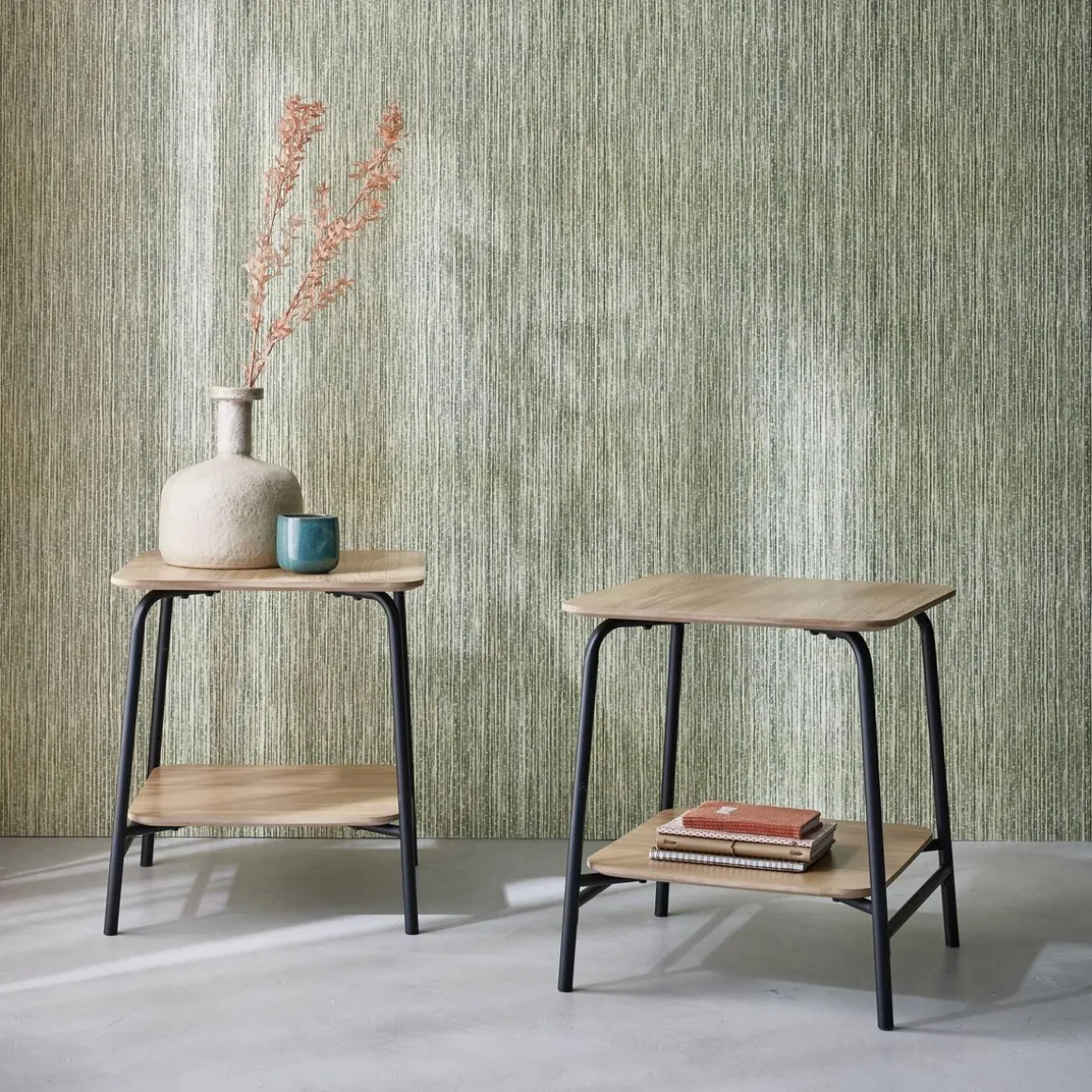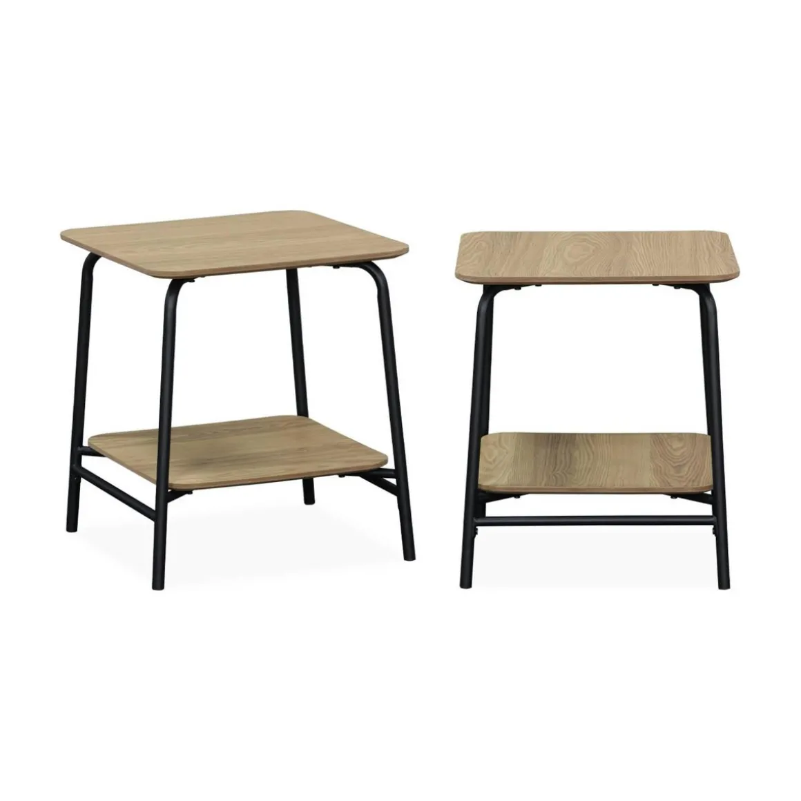 Tout en sobriété, ces tables de chevet se fonderont dans n’importe quelle chambre et peuvent servir de tables d’appoint dans un salon, une salle à manger ou même une entrée. Leur décor bois clair et leur structure en acier ne sont pas sans rappeler les salles de alte, donnant un esprit vintage et réconfortant à votre intérieur. Leur étagère centrale vous permet de ranger des livres ou encore des lunettes, tandis que leur plateau supérieur, plus large, peut accueillir une lampe de chevet ou une plante.