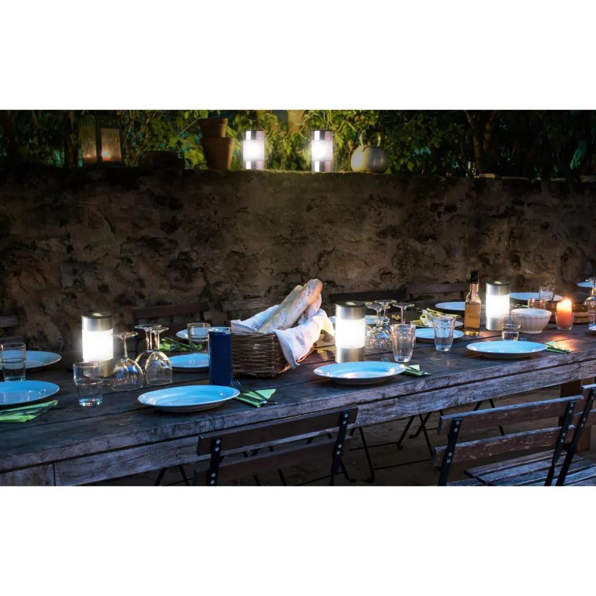 Deux utilisations produits: posées (sur une table ou muret) ou plantées au sol avec piquet.