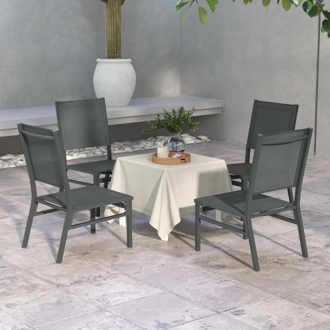 – Lot de 4 chaises de jardin avec revêtement textilène, idéal pour apporter une touche d’élégance supplémentaire à votre extérieur