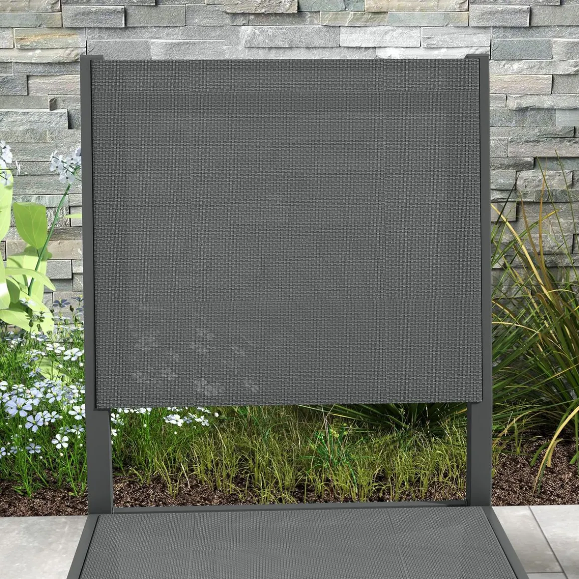 – Structure en aluminium, revêtement assise & dossier en toile textilène : jolie mixité des matériaux