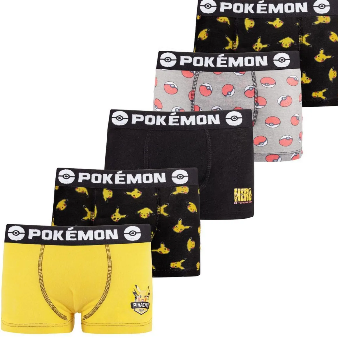 Découvrez le lot de 5 Boxers pour garçon Pokemon ! Vous allez retrouvez des motifs Pikachu qui feront de vous un vrai dresseur. Les boxers en coton vous donneront le confort et la qualité dont vous avez besoin !