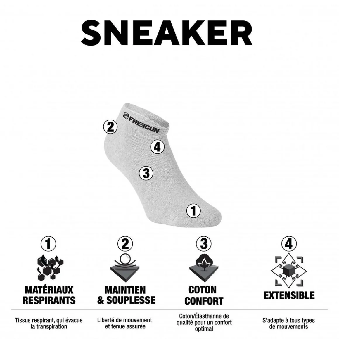 Les chaussettes du gagnant, signées Freegun ! Immaculées de blanc ou de noir pour tes chaussures casual street, avec le logo sous la voute plantaire. Sobres et branchées. L’été s’annonce top tendance.