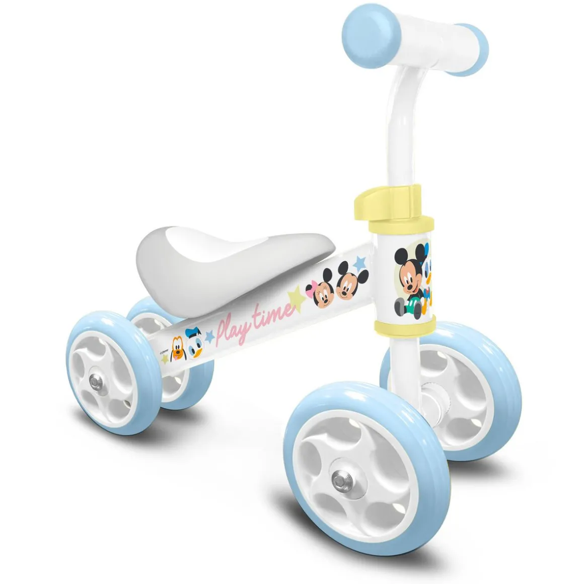 Porteur draisienne 4 roues. Cadre acier ergonomique et proche du sol, léger et facile à enjamber. 4 grandes roues PVC pour plus de stabilité. Large selle en mousse pour plus de confort et une assise en toute sécurité. Guidon ajustable. Poignées anti-pincement en EVA pour plus de confort. Limitation de l’angle de direction. Stimule et aide à l’apprentissage de l’équilibre (marcher et rouler). Rapide et facile à assembler.
