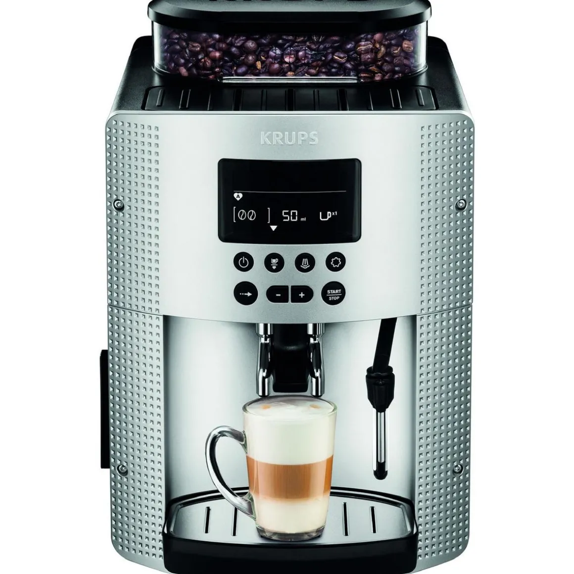 Découvrez sans effort l’essence même de l’espresso grâce à la machine à café à grain automatique KRUPS Essential. La machine expresso avec broyeur KRUPS EA815E70 en couleur gris est dotée d’une puissance de 1450 W et d’une pression de 15 bars. Elle permet de préparer deux tasses à la fois avec 3 niveaux de température et une intensité réglable. Elle dispose également d’un écran LCD, d’un nettoyage et d’un détartrage automatique, d’une buse vapeur et d’un réservoir de 1,7 L.