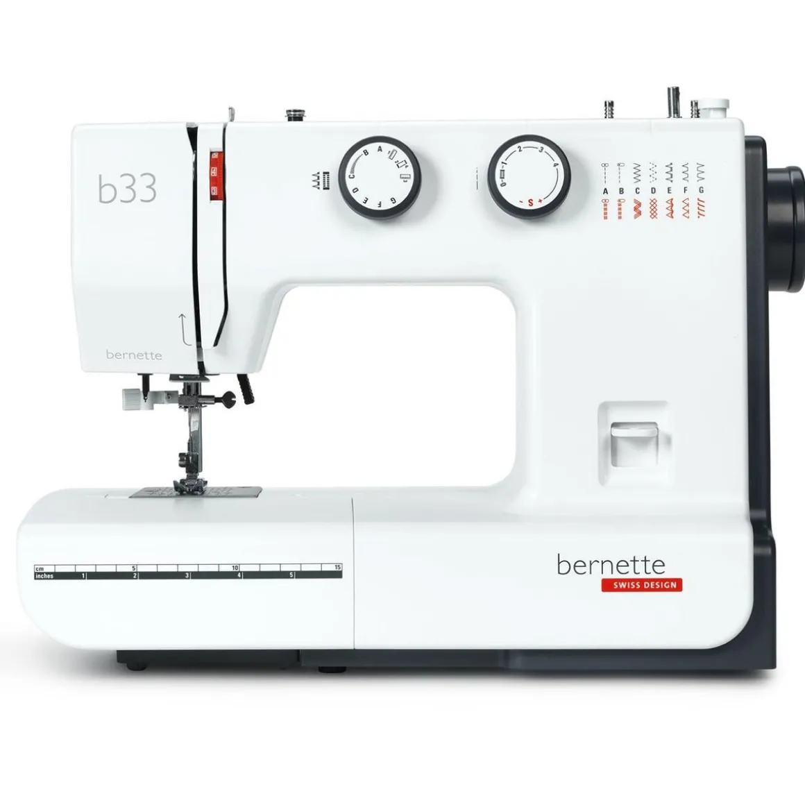 La Bernette 33 est une machine à coudre mécanique au design suisse élégant. C’est un modèle idéal pour les débutants. Simple d’utilisation, elle facilite l’apprentissage des techniques de base de la couture . Cette machine solide jouit d’une longue durée de vie, d’une qualité de point exceptionnelle et de toutes les fonctionnalités requises par un débutant en couture. Toutes les fonctions sont réglables à partir de ses deux boutons . La Bernette 33 dispose de 15 points, dont des boutonnières et d’une largeur de point maximum de 5 mm. Le levier pour le pied à deux niveaux, l’ enfile-aiguille et le coupe-fil manuel simplifient l’enfilage de la machine et sa mise en route.