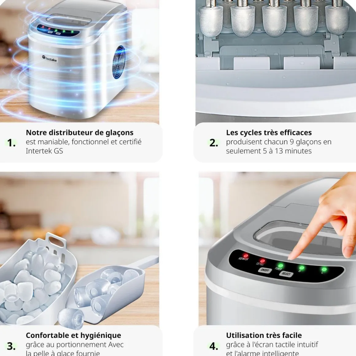 - 9kg de glaçons par cycle, env. 5-13 minutes