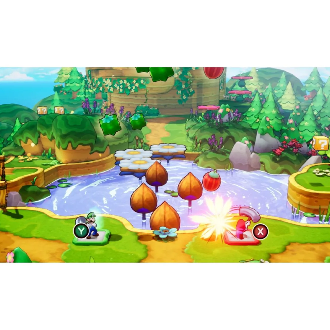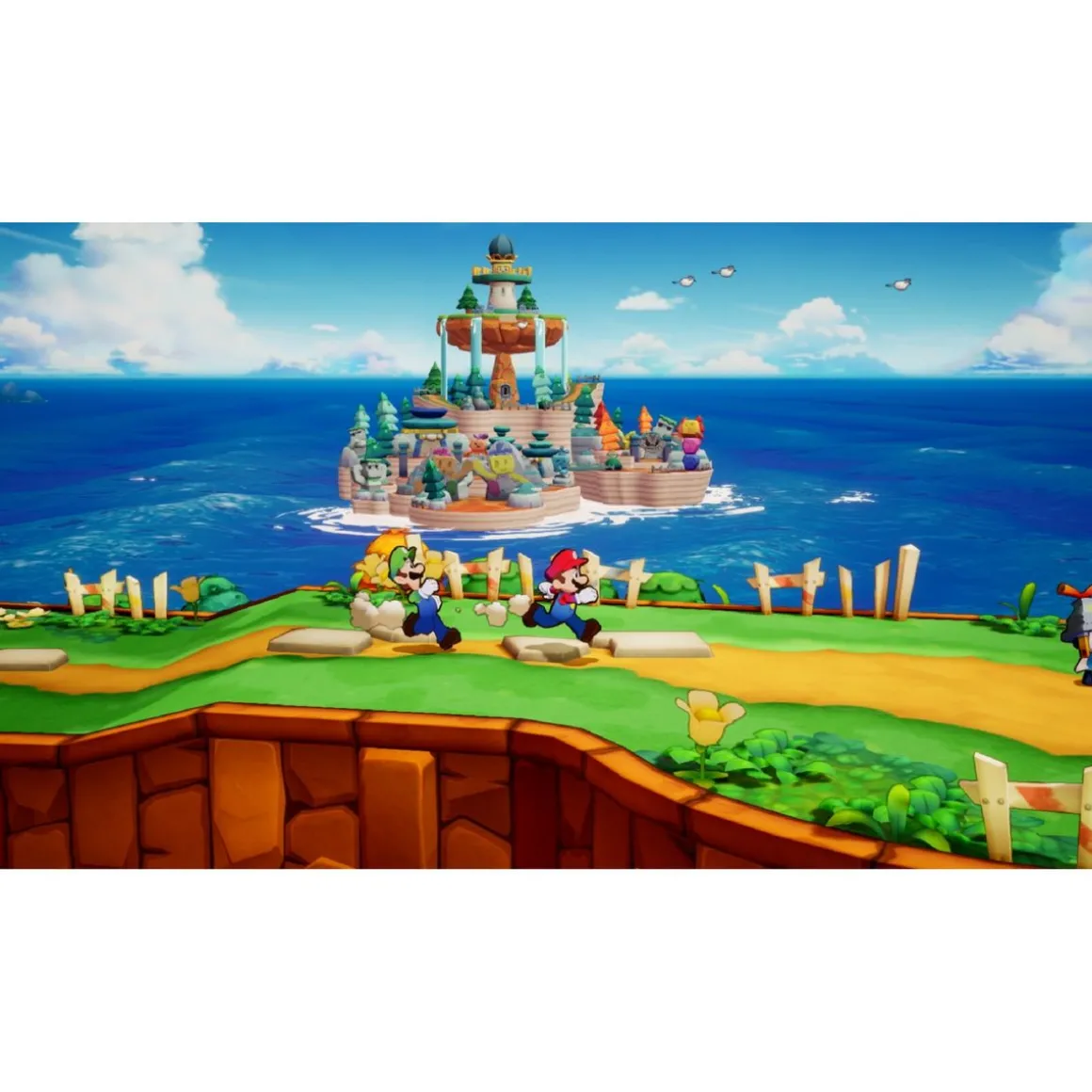 Incarnez Mario et Luigi, tout juste aspirés hors du Royaume Champignon, dans un monde constitué de multiples îles et d’un immense océan bleu azur : Connexia ! On raconte qu’un grand mystère plane sur ces eaux turquoise, et c’est à bord du Navisthme, étrange île-navire, que vous pourrez voguer d’île en île afin de découvrir un moyen de rentrer chez vous ! Terre en vue ?