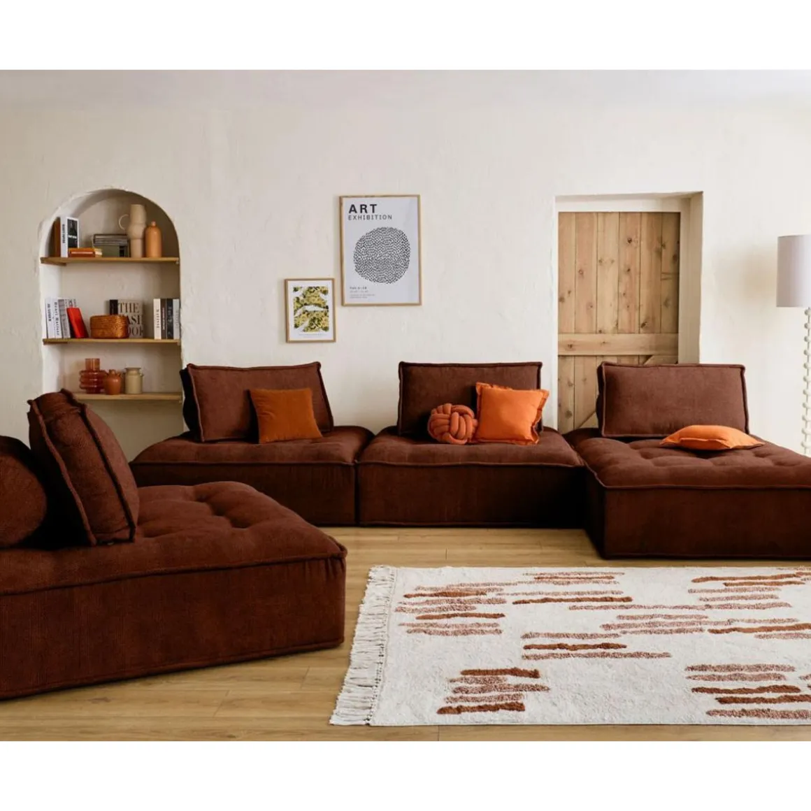 Le module d’assise Marisol, de même que le reste de la collection, se décline en plusieurs coloris tendance, à savoir : gris, bleu, beige, terracotta, jaune et vert. Autre avantage indéniable : la chauffeuse est modulable et peut s’assembler avec d’autres modules de la collection, que ce soit le pouf ou la méridienne. Vous pouvez ainsi l’utiliser seule ou la combiner pour créer un canapé d’angle droit ou d’angle gauche, et même un canapé panoramique 6, 7 et même 8 places selon vos envies. Vous pourrez ainsi transformer votre espace de vie en un lieu à la fois chic et confortable. Avec Marisol, composez le salon de vos rêves et déclinez ses coloris selon vos envies en version monochrome ou en version patchwork.