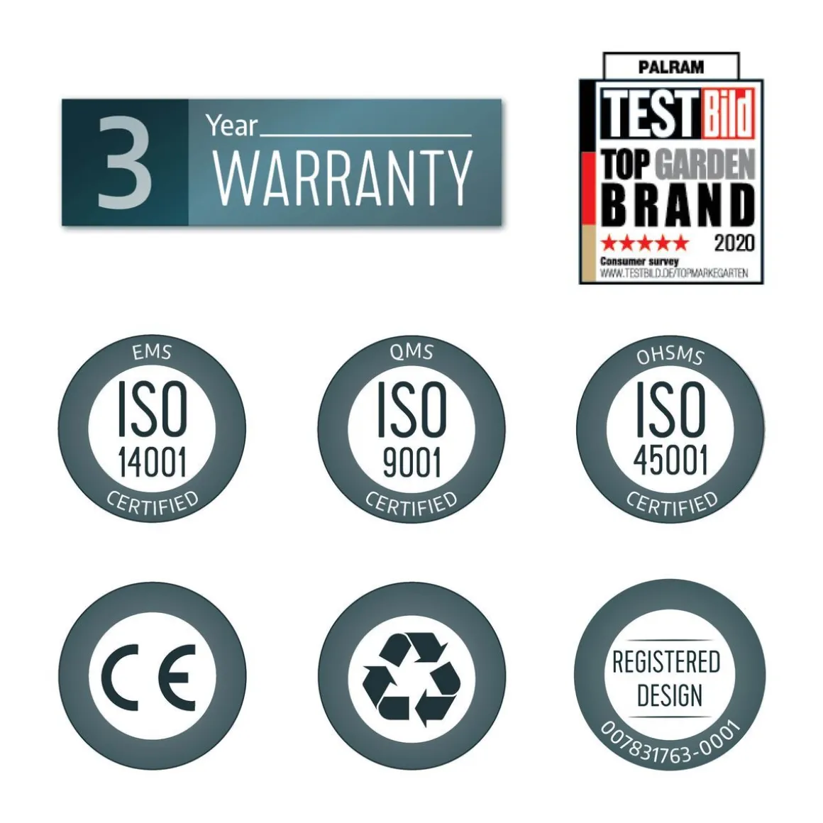 • Profilés robustes en aluminium laqué et supports en acier galvanisé finition gris anthracite
