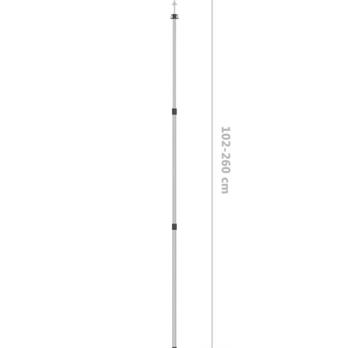 Ce mat de tente telescopique est reglable en longueur allant de 102 cm a 260 cm pour repondre aux differents besoins de hauteur. Grace a l’aluminium utilise, le mat est leger et facile a transporter. Il est conseille de fixer correctement plusieurs segments si l’on les utilise afin d’eviter d’endommager le mat de bache. Pour eviter d’endommager les baches et les tentes, il faut eviter tout contact avec des parties pointues de cette tige de bache avec le tissu.