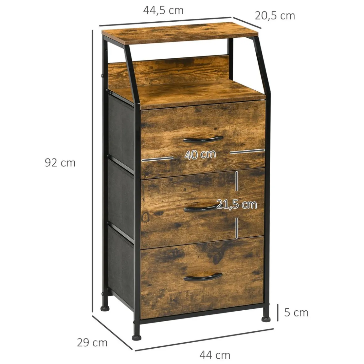 – Dim. rangement tiroirs : 39,5L x 27,5l x 20H cm