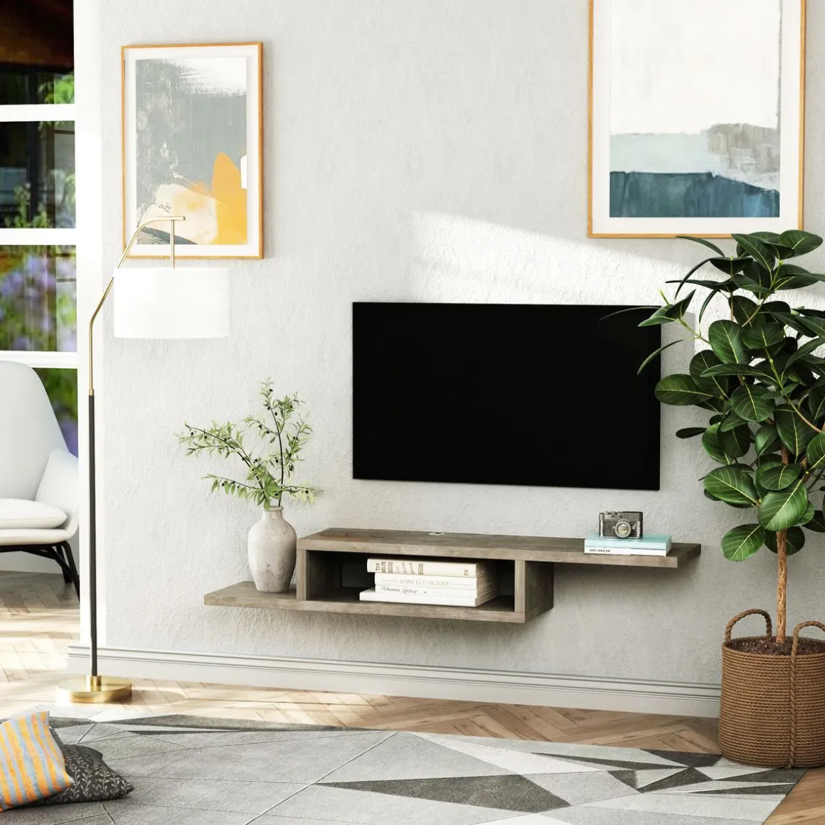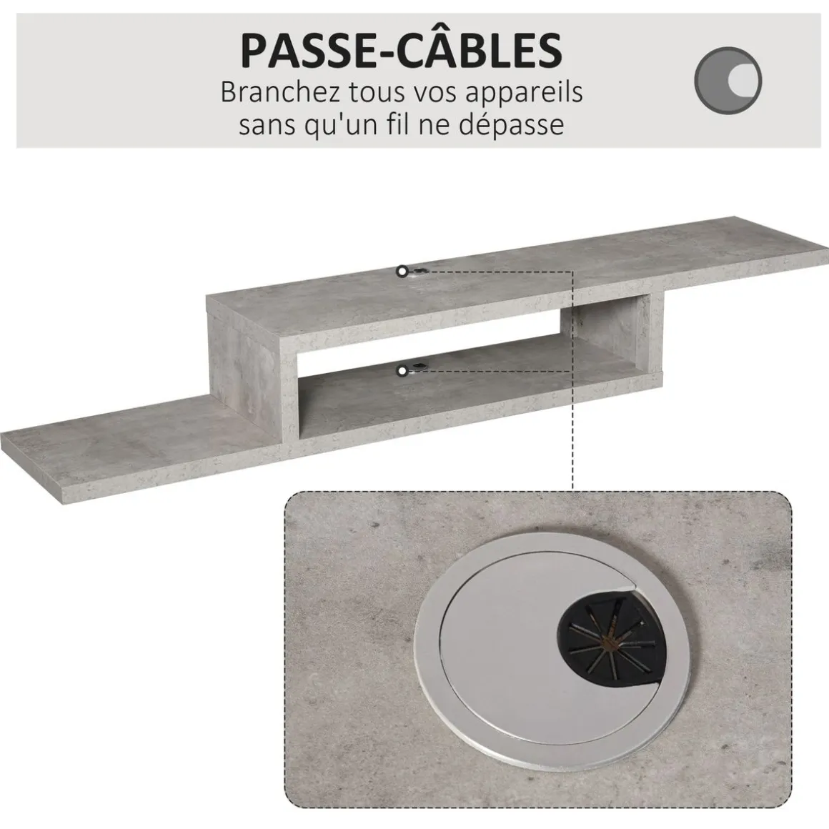 – Meuble TV mural flottant qui optimisera votre espace libre disponible au sol et vous facilitera son entretien