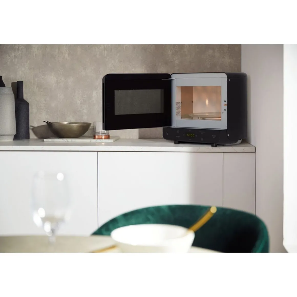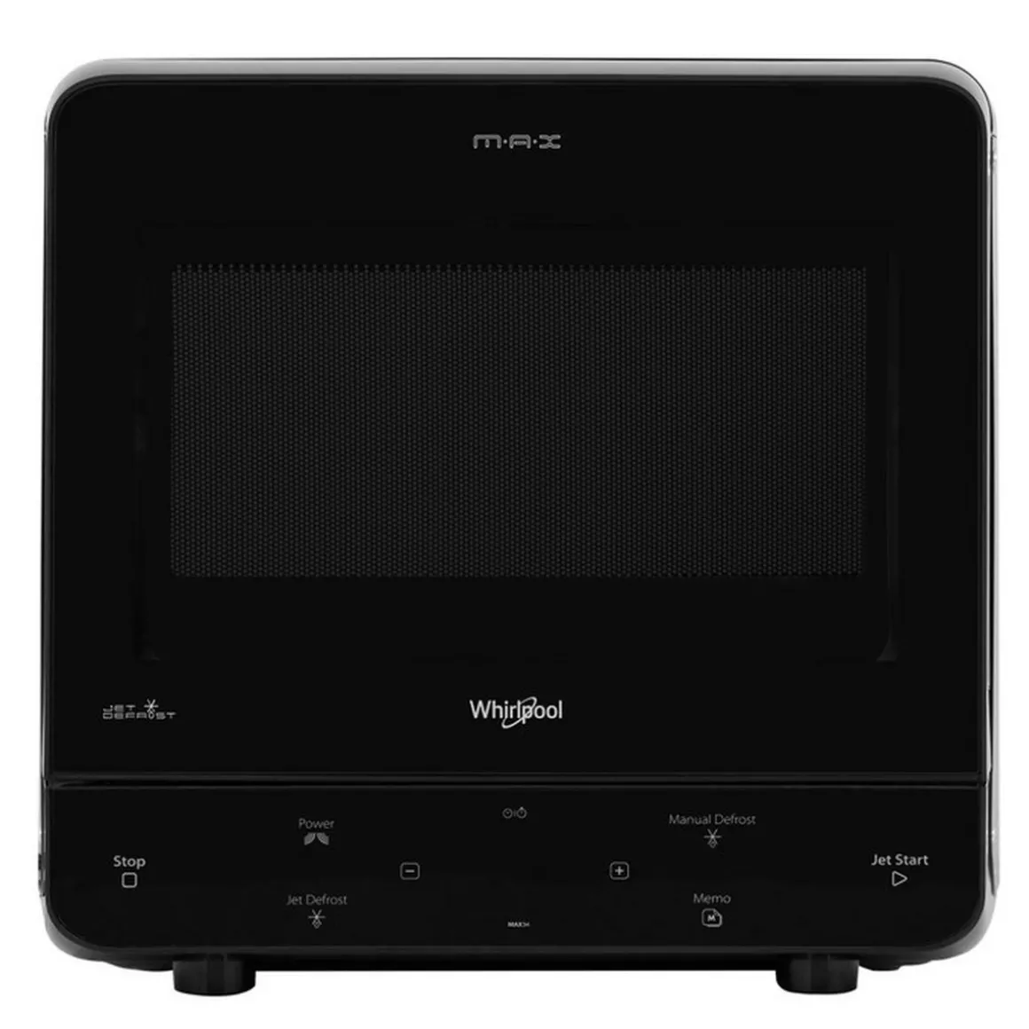 WHIRLPOOL Four micro-ondes MAX34NB Profitez de ce micro ondes de 700W. Grâce à sa cavité arrondie, ce micro-ondes trouve sa place dans les cuisines les plus petites, tout en offrant un plateau de 28cm, comme un micro-ondes de 25L. Profitez de la fonction Jetfrost pour décongeler les aliments 7 fois plus rapidement que dans un micro-ondes traditionnel, sans départ de cuisson. Grâce au 3D System, les plats sont réchauffés uniforméments.