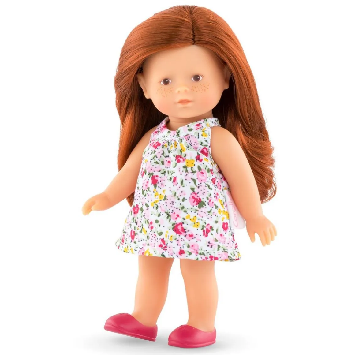 Elle a un corps tout en vinyle doux au toucher et à la délicate senteur de vanille. Cette Mini Corolline a la peau blanche et ses yeux bleus sont peints sur son visage. Elle a des cheveux roux, longs et soyeux pour faciliter le coiffage.