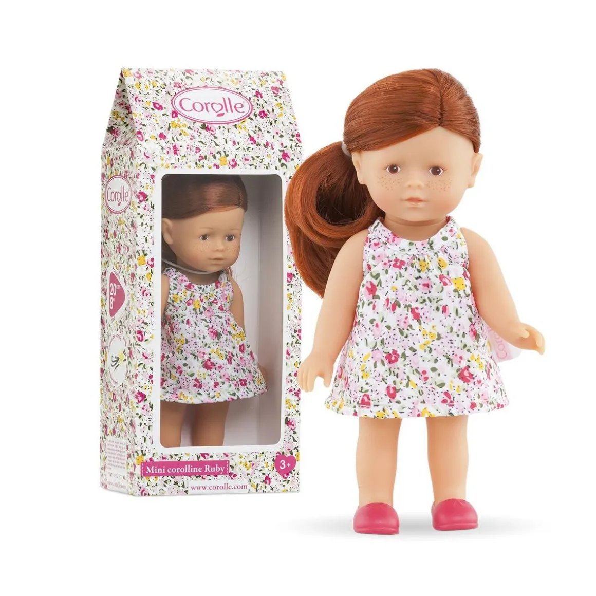 La mini poupée mini Corolline Ruby Rousse est vendue dans son emballage boîte cadeau fleuri, prête à offrir !