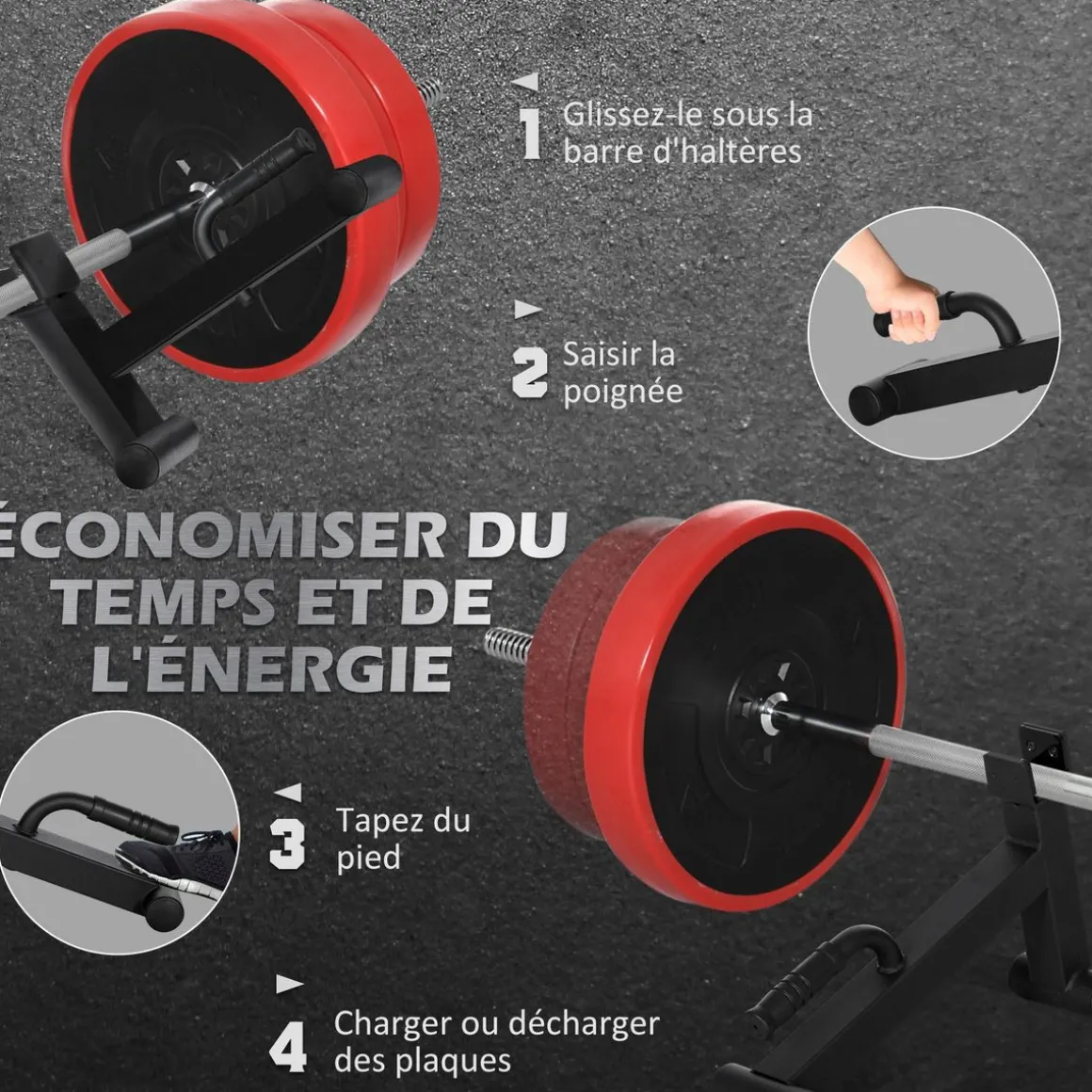 – Cric d’haltères parfait pour ajouter ou retirer facilement des poids de votre barre