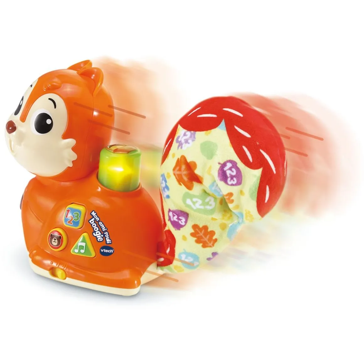 Mon ami rouli boogie – 9 – 36 mois. Un petit écureuil qui incite Bébé à ramper et à le suivre partout !. Un bouton lumineux Press et Go pour voir l’écureuil avancer tout en agitant sa queue. Lorsqu’il appuie sur le bouton, Bébé déclenche des sons et des phrases amusantes et déclenche des activités l’invitant à suivre l’écureuil. La queue de l’écureuil est en tissu rembourré. Trois boutons colorés pour découvrir les chiffres, les animaux, leurs cris et leurs habitats naturels. + de 100 phrases, chansons, mélodies et sons amusants. Ce petit écureuil développe la motricité fine et la coordination Main/?il de Bébé. Arrêt automatique et réglage du volume sonore. Fonctionne avec 2 piles LR03 fournies.
