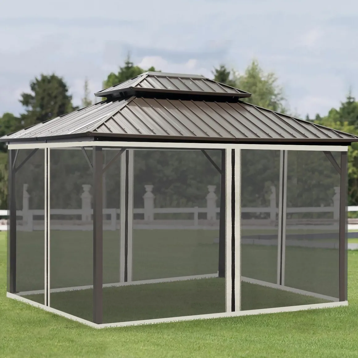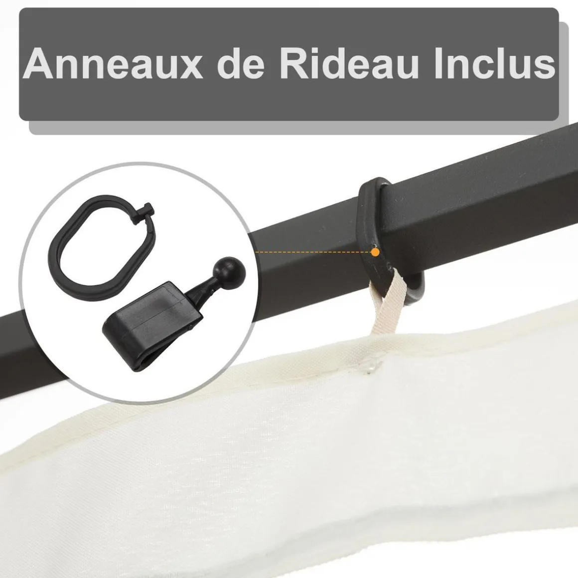 – Système d’attache inclus par crochets pour un parfait maintien de la moustiquaire à la structure de votre tonnelle