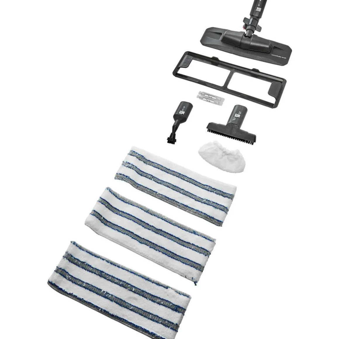 | Livré avec | Bonnette, Serpillère, Tête rectangulaire, Adaptateur tapis/moquette, Petite brosse, Brosse ronde nylon, Concentrateur vapeur | |