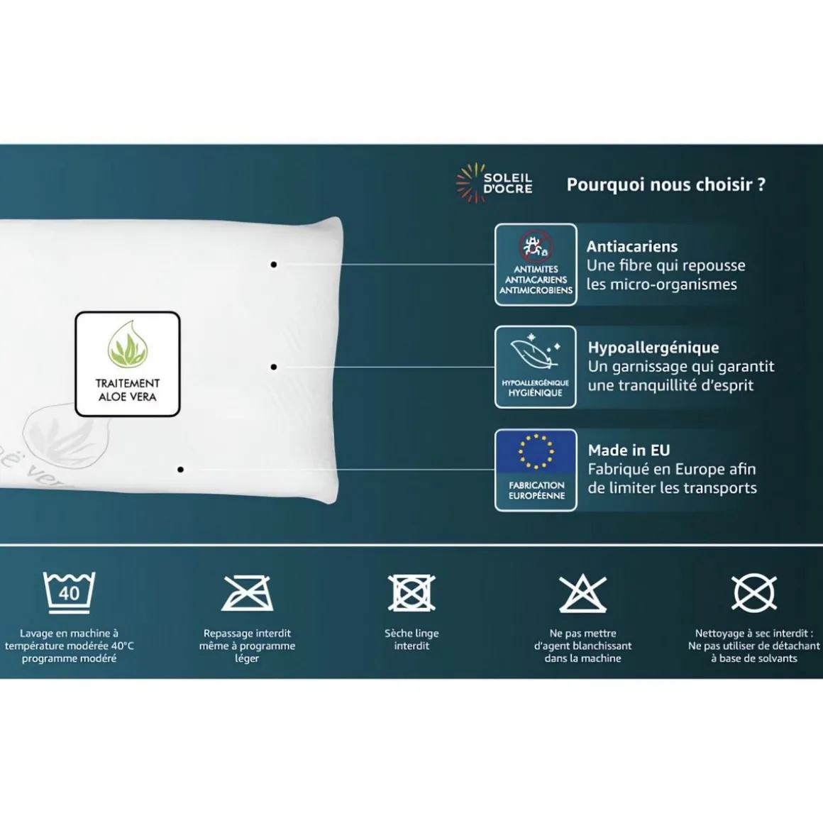 Oreiller mémoire de forme 43×70 cm MEMORY par Soleil d’ocre