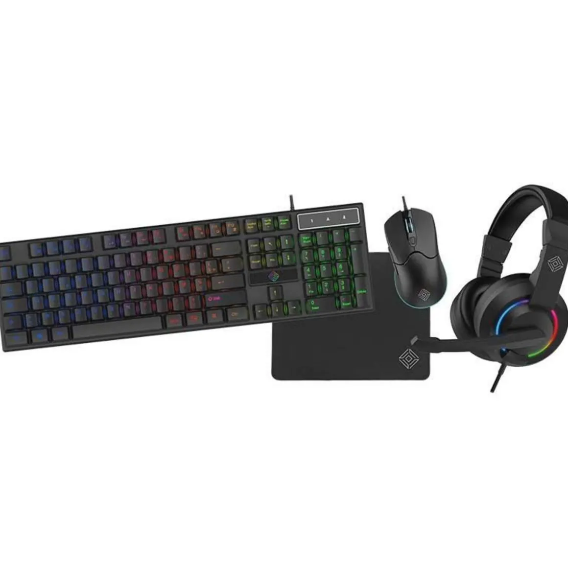 Pack complet d&rsquo,accessoires gamer 4 en 1. Le pack comprend : 1 clavier à Leds RGB, une souris gaming, 1 tapis de souris et 1 casque gamer rétroéclairage LED.
