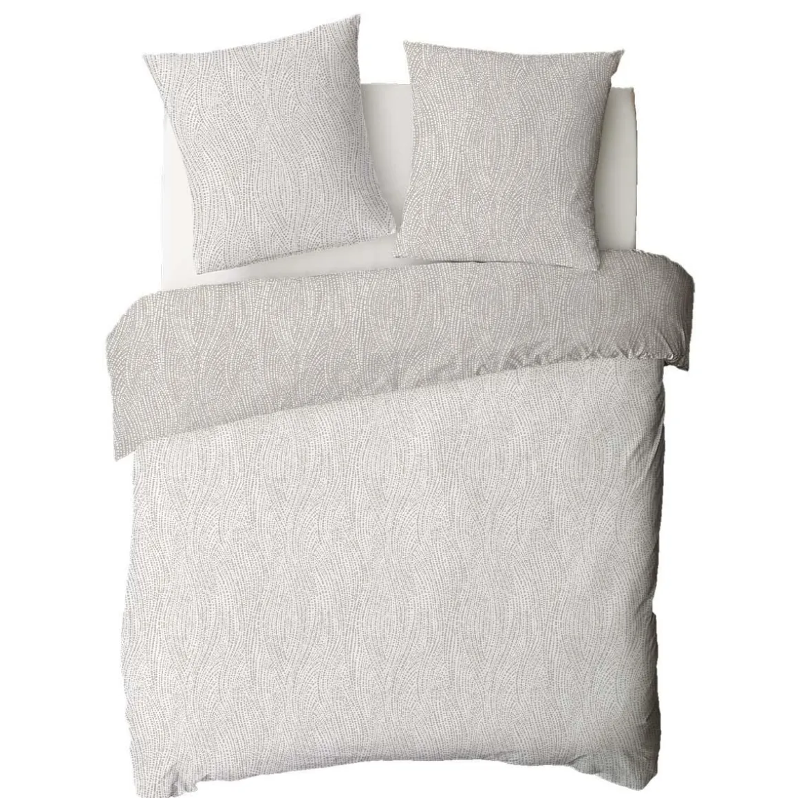 Parure de lit en coton réversible imprimé géométrique 57 fils beige comprenant 1 housse de couette + 2 taies d’oreiller 63x63cm.