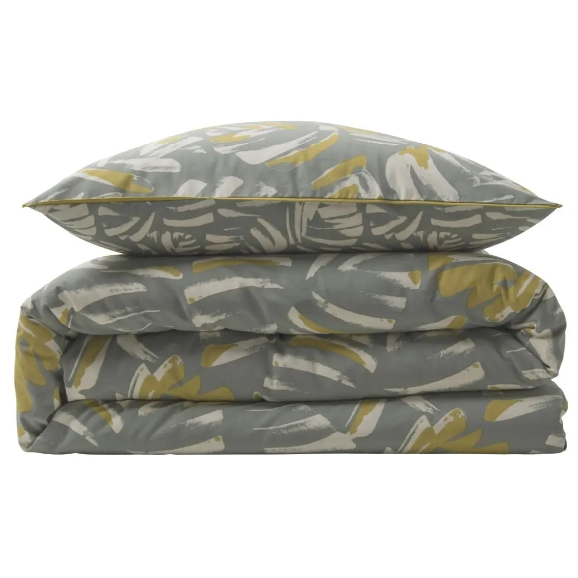 Avec notre parure de lit NAOMI en 100% coton, nous avons opté pour un motif graphique feuillage / tropical.