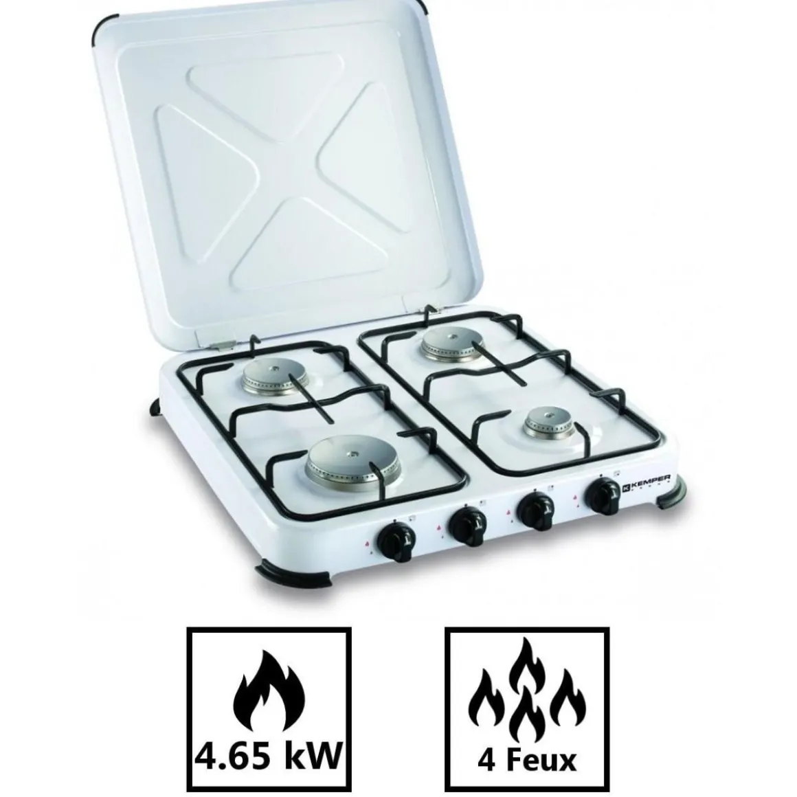 Plaque de cuisson gaz portable 4 feux 4650 W blanc laqué KEMPER