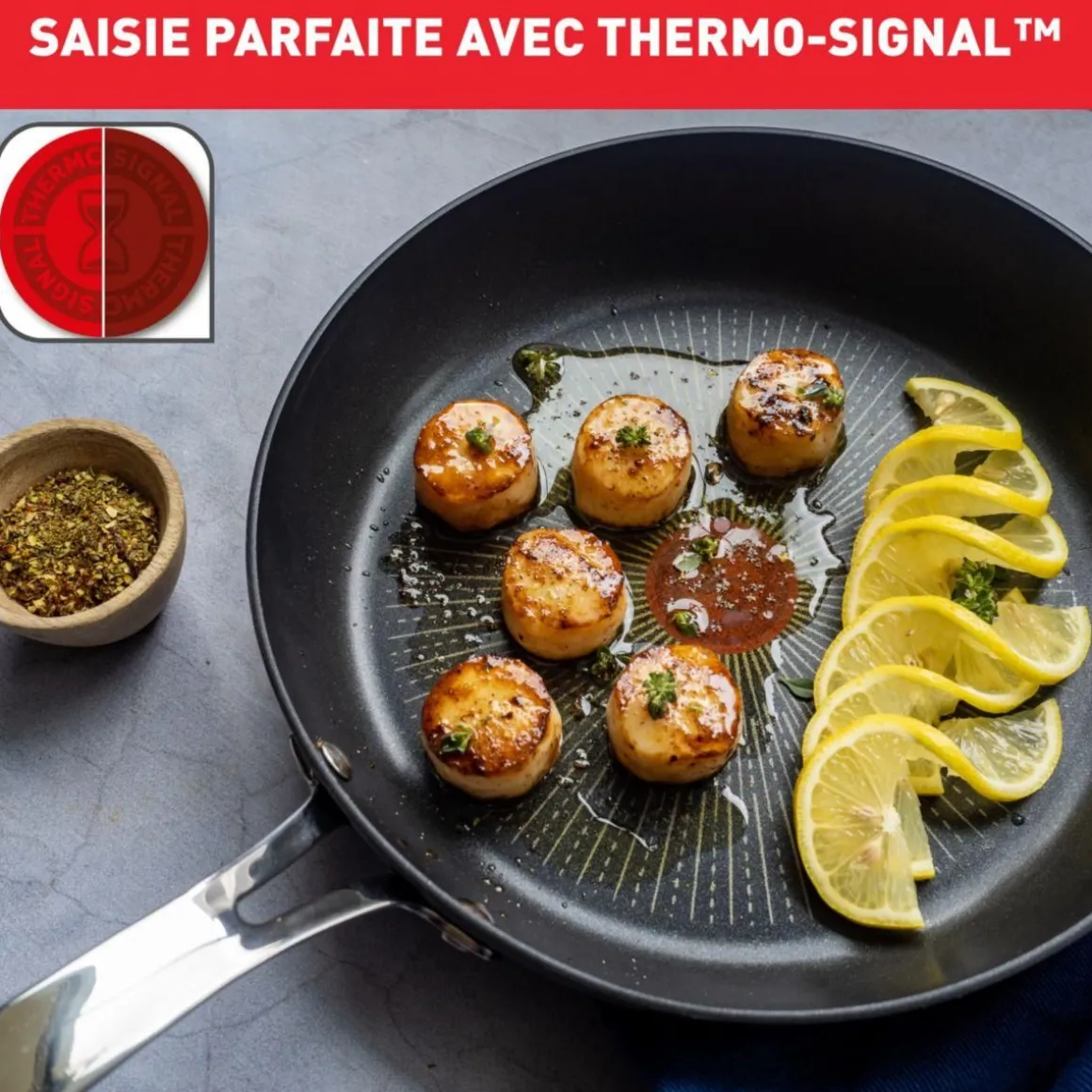 | Particularité | Nouveau revêtement anti-rayures TITANIUM offre une durabilité antiadhésive résistant aux ustensiles métalliques.Base induction épaisse THERMO-FUSION™+, portant la poêle à des performances de cuisson d’un haut niveau. Compatible four jusqu’à 250° | |