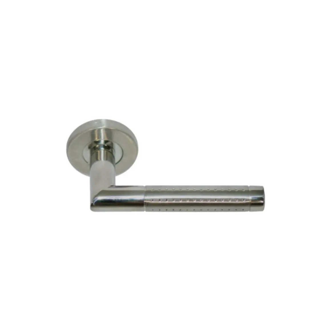 Poignées modèle Barsac – inox 304 bicolore brillant mat x2,un design moderne, décoré de poinçons, parfait pour équiper chaque porte de votre domicile. Sa finition bicolore vous permettra de l’adapter dans toutes les pièces.