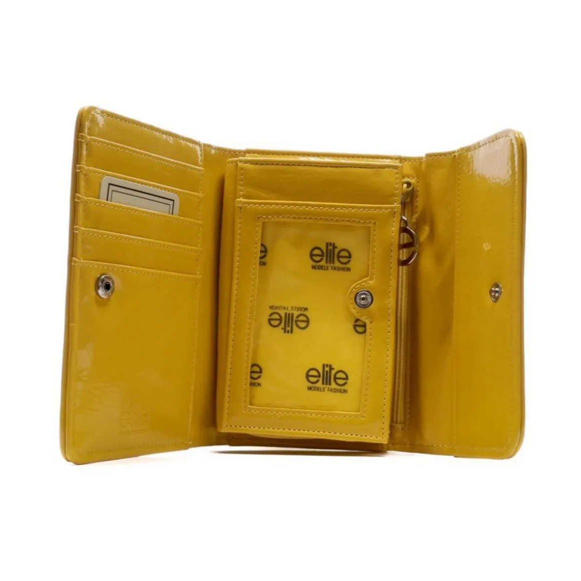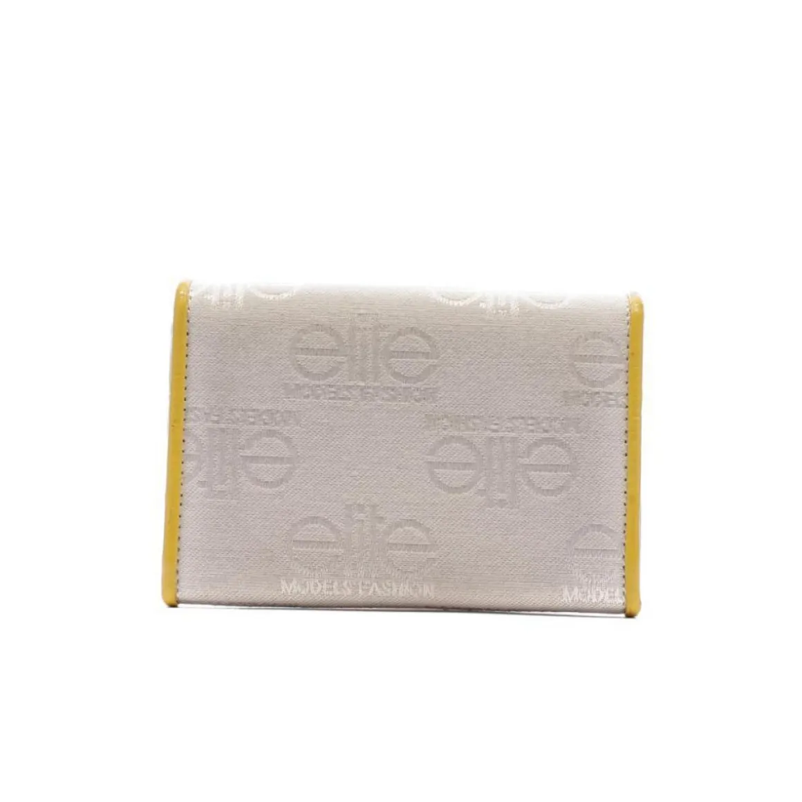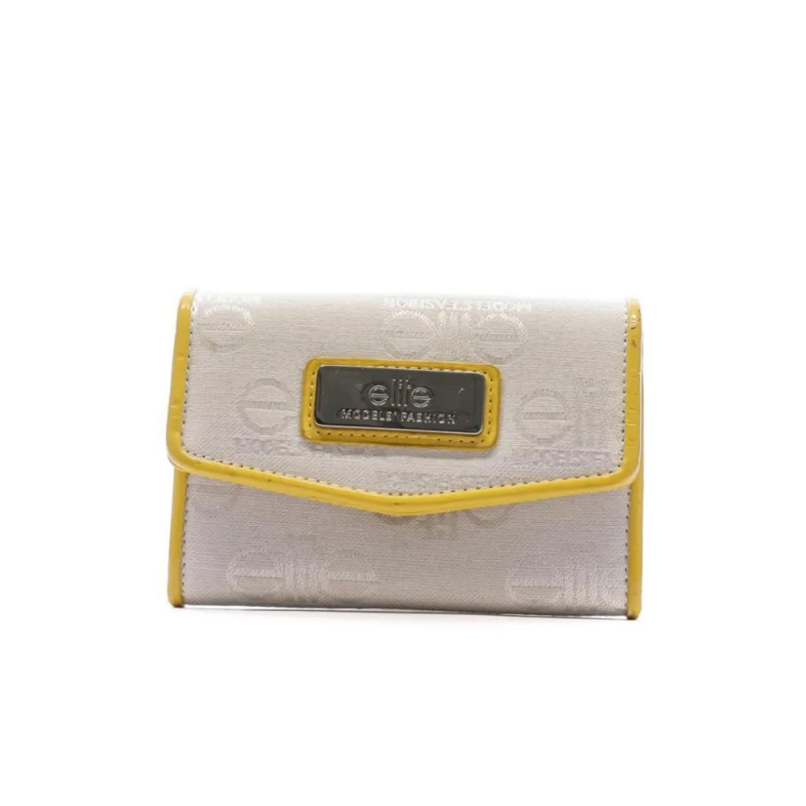 Portefeuille femme de la marque Elite Fermeture à rabat Plusieurs rangement cartes/monnaie Coloris : Blanc/Jaune Badge métal Dim : 15 x 11 x 3.5 cm