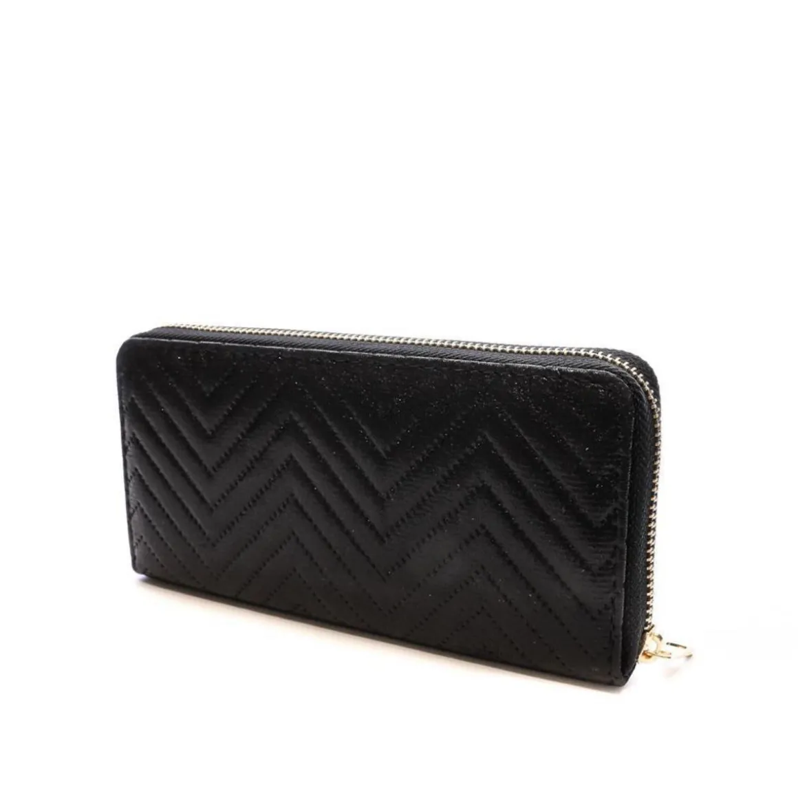 Optez pour le portefeuille de la marque STELLA GREEN !Coloris : Noir Zip de fermeture Logo brodé 12 Rangement carte Rangement zippé Dimensions : 19x10x2 cm Composition : 100% Polyuréthane