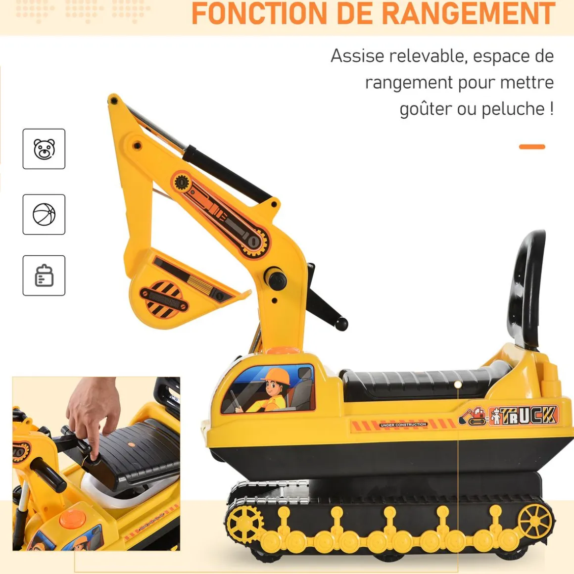 – Equipé d’un klaxon, d’un tractopelle et d’un coffre pour un maximum de plaisir
