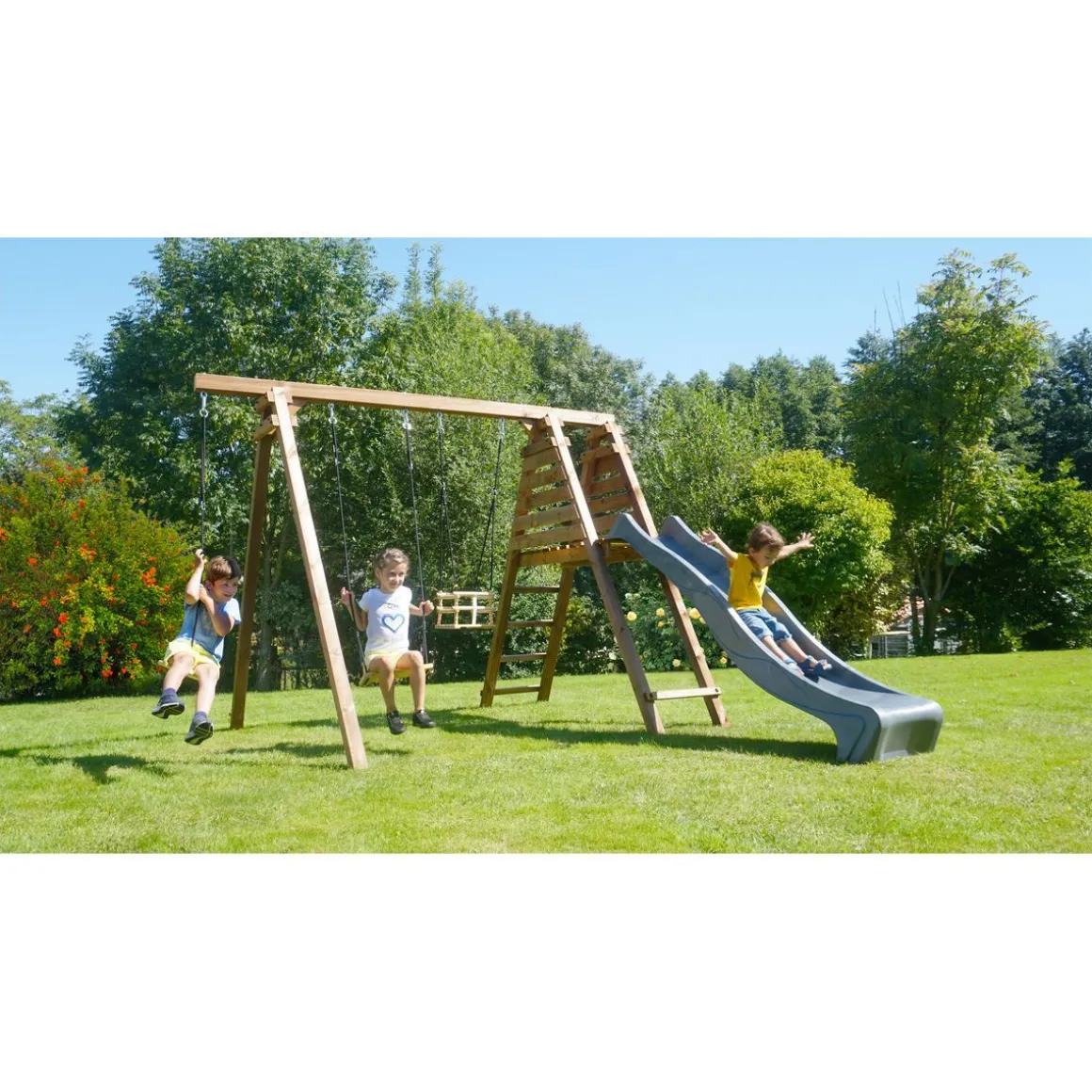 Portique balançoire avec toboggan – Bois – H2,24 m – FLEUR