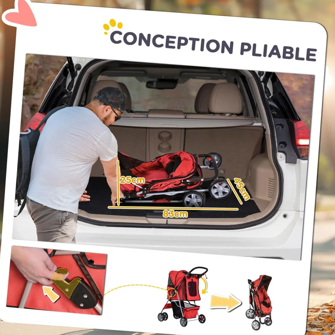 – Dim. pliées : 83L x 45l x 25H cm