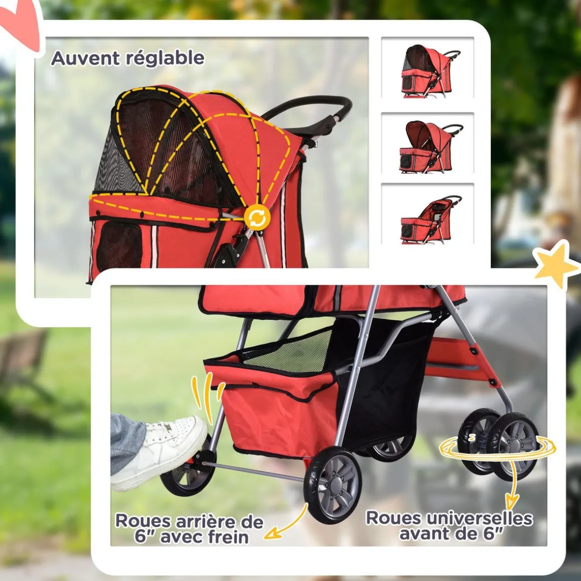 – Poussette buggy de transport pour chiens et chats : jeunes, âgés, affaiblis ou en rééducation